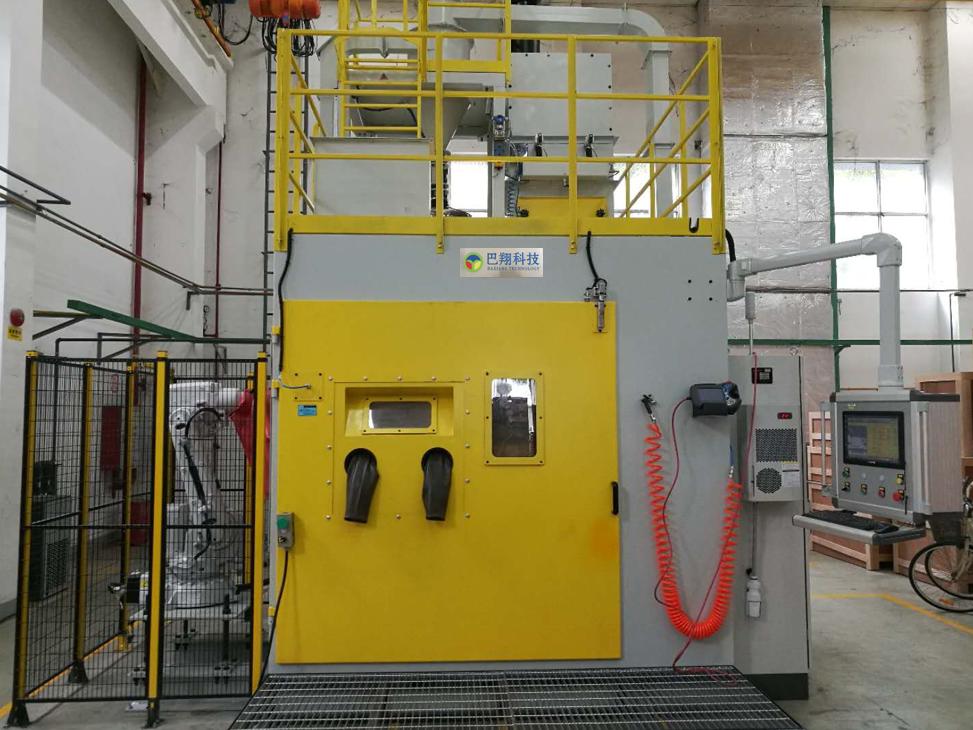 1) 噴丸室體采用雙層結構,內壁貼附10mm耐磨橡膠板防護;