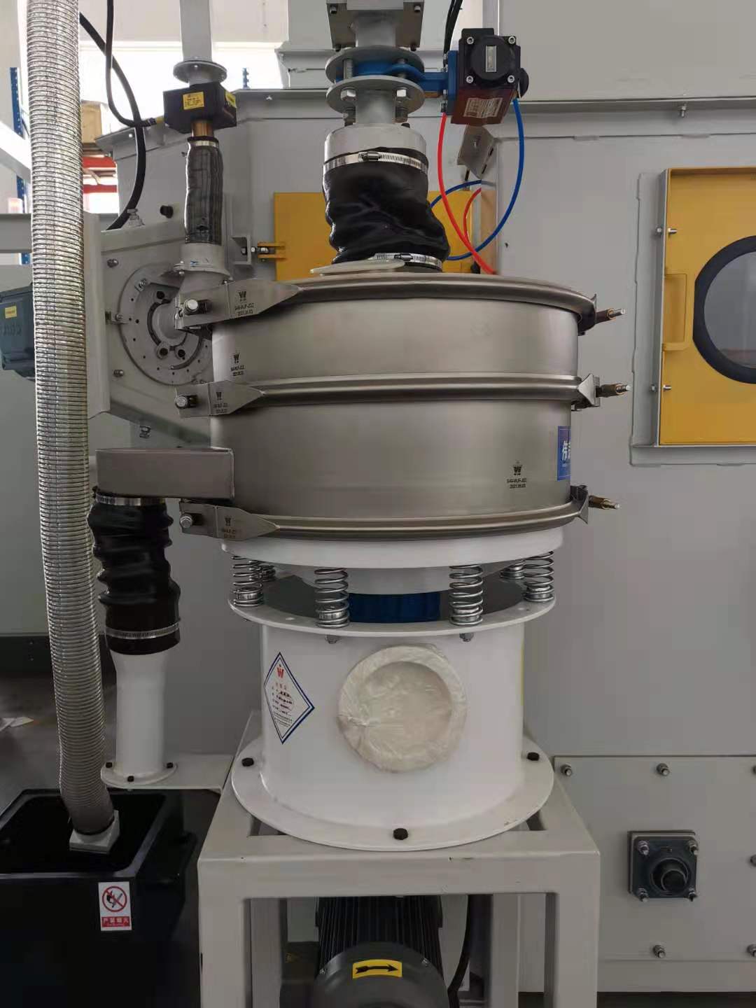 4)  丸料分離單元采用一級丸塵高效風力分選器,二級振動篩精確尺寸旁系分離;