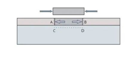 1、應力強化機制:噴丸過程中,工件表面在丸粒的沖擊下產生塑性變形,使材料向四周延伸,延伸的部分會受到周圍組織的束縛形成一定的殘余壓應力,當丸粒沖擊AB中心部位的材料時,材料會向四周產生膨脹,而周圍的材料會產生壓應力抑制其膨脹,而在CD位置的材料會產生一個輕微拉延的過程,進而產生一個與壓應力平衡的拉應力。